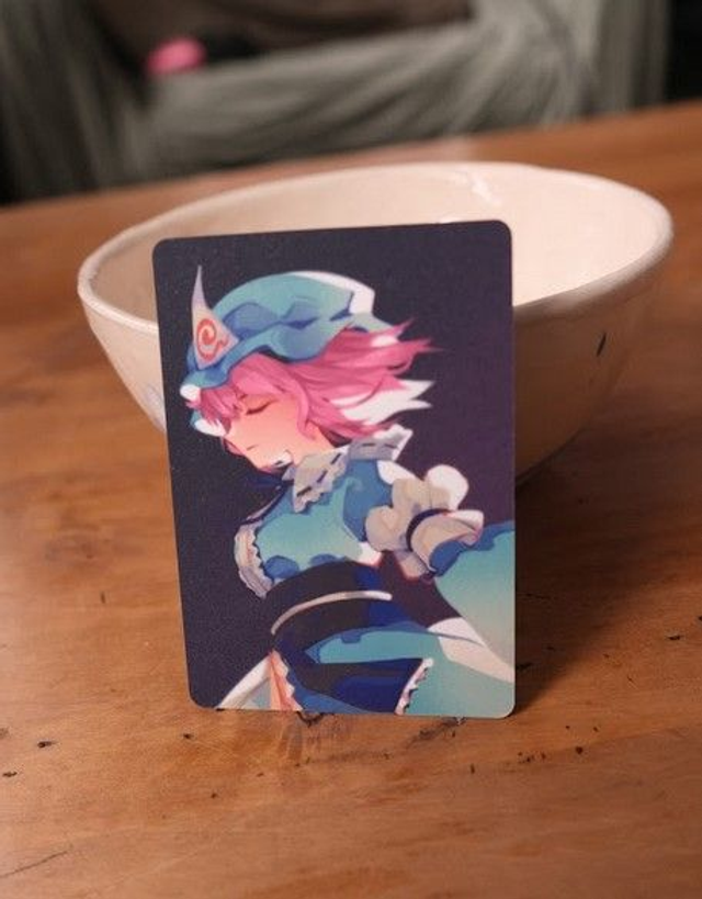 A thick, Matte soft touch card with holographic foil on one side!